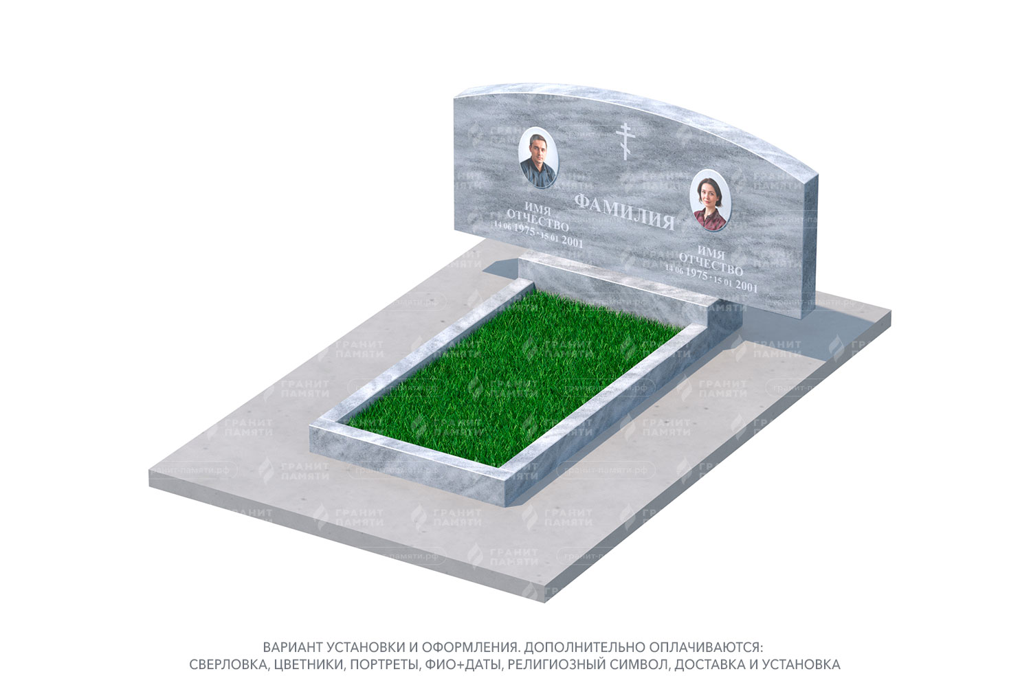 Мы можем добавить портреты на фотокерамике, гравировку с именами, датами и эпитафиями, а также декоративные элементы.